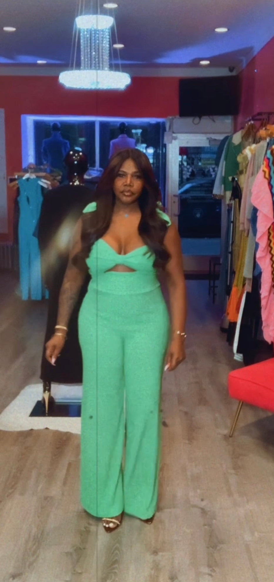 Gorgeous thick straps with wide legs. This jumpsuit features a sexy keyhole cutout mid chest area. Beautiful bright color with a great fit and stretch.