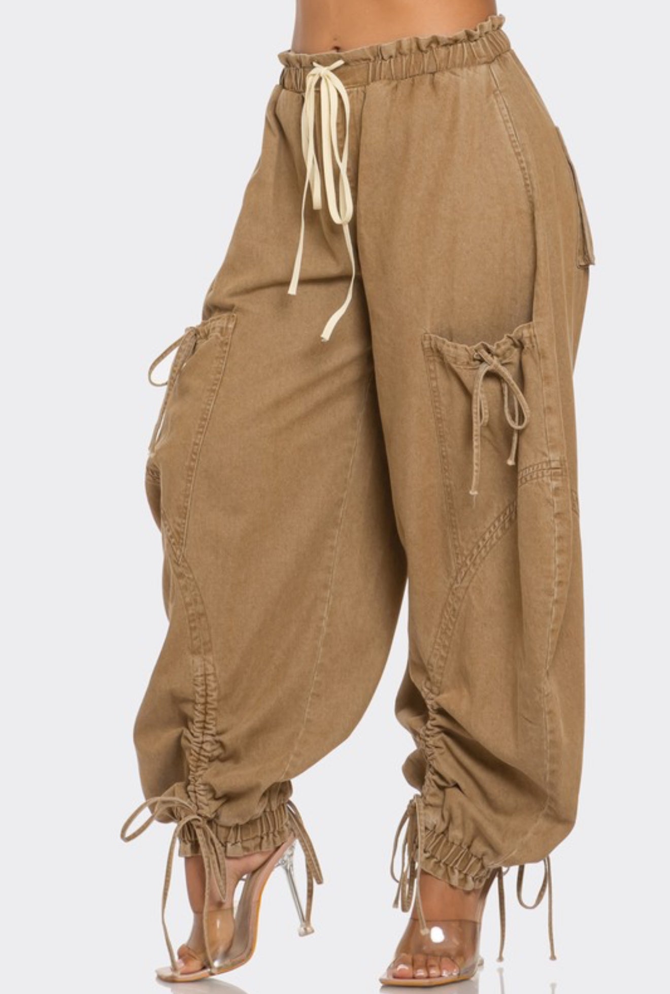 These pants feature a relaxed, oversized fit with an adjustable drawstring waist and cuffs for a customizable look. The unique cargo-style pockets add functionality and a trendy, streetwear-inspired vibe. Perfect for pairing with a crop top and heels or a casual tee and sneakers, these versatile pants will make a bold statement in any outfit. Experience the perfect blend of style and utility with the Urban Chic Drawstring Denim Cargo Pants.