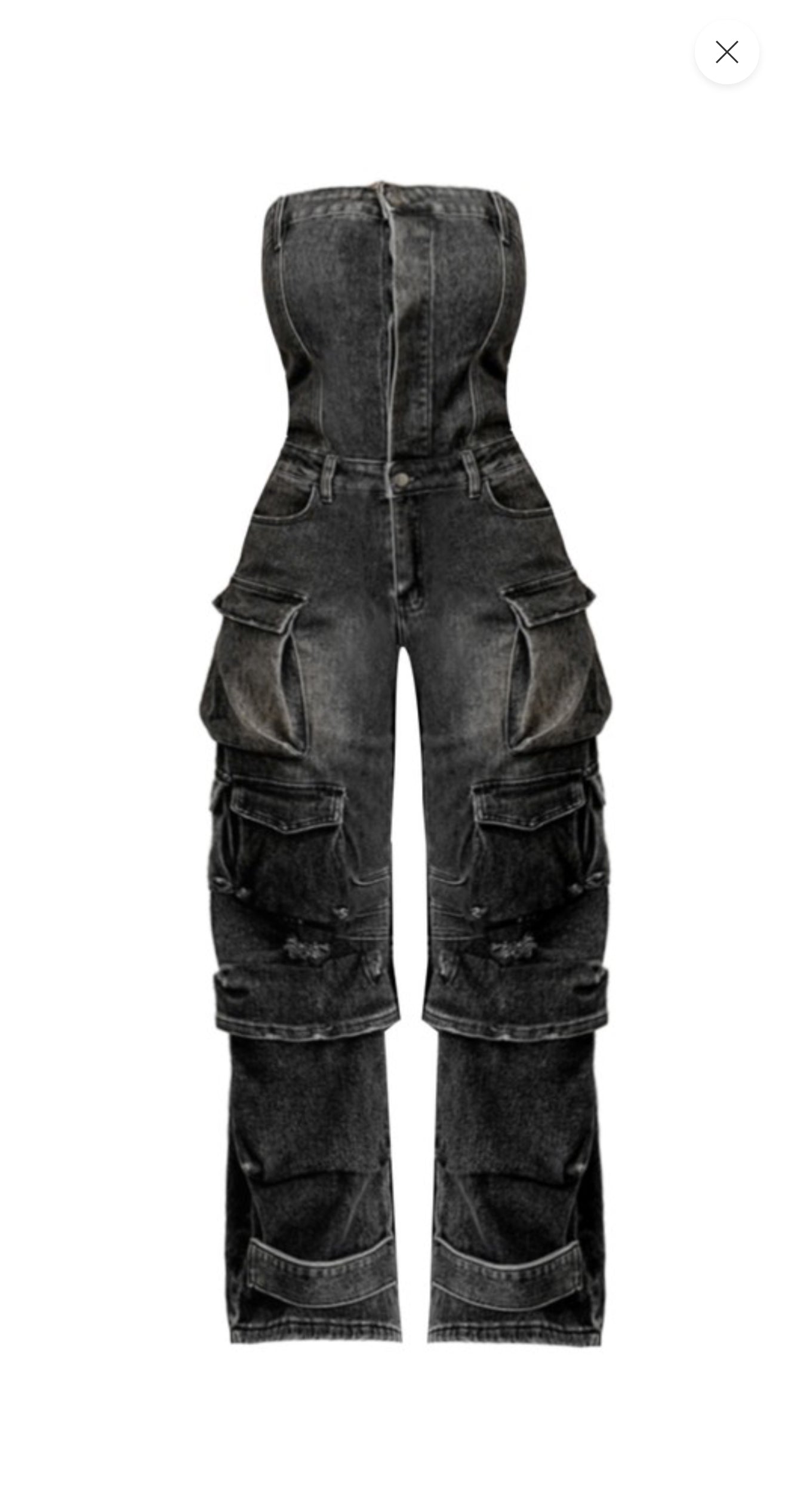 This Denim Cargo Camouflage and Denim Jumpsuit with Corset Detail is a unique blend of utility and style, perfect for making a bold fashion statement. The jumpsuit features a fitted, strapless corset-style bodice that enhances your silhouette, paired with relaxed, wide-leg cargo pants that offer both comfort and functionality. The distressed denim gives the jumpsuit a rugged, lived-in look, while multiple cargo pockets add a utilitarian edge.