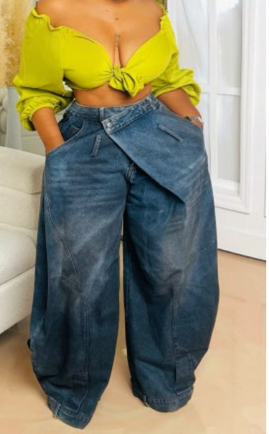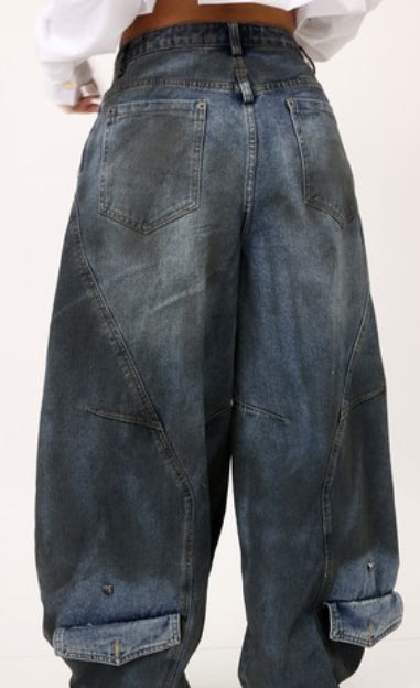 Different vibe awaits you with these vintage washed denim wide pants. Features wide legs with like pockets at the lower leg and multi loops for added style.